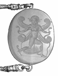 With the decline of Roman Empire there began the decadence of glyptic. The forms became crude, comes back the old mystical perception of gems, when a little symbol or a schematic sketch was enough for intensifying the magic power of a stone.